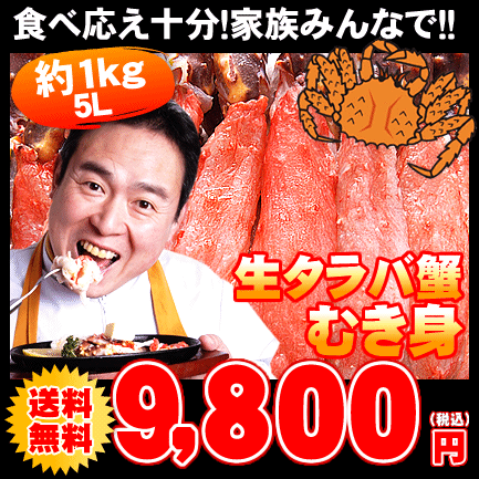 ●今一番のオススメはコレ! ★送料無料・正規品★5Lタラバガニ脚 1kg×3肩 ぎっしり詰まった蟹肉!公設市場流通商品なので身入りは確かです♪大量仕入れによる在庫品ではありません。シュリンク包装済なのでギフトにも大好評!【あす楽価格: 14,480円 ■ 4Lタラバガニ脚 (750g×2肩) 一覧を見る >>> ■ 5Lタラバガニ脚 (1肩 1kg) 一覧を見る >>> ■ 6Lタラバガニ脚 (1肩 1.2kg) 一覧を見る >>> (更新日時:2010/12/16 11:13) Supported by 楽天ウェブサービス |